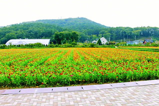 赤やピンク、黄色……。色とりどりのヒャクニチソウ(百日草)が、にぎやかに咲いていた。先月、池田大作先生ご夫妻が山梨へ。山中湖周辺で、車中から先生はシャッターを切った。