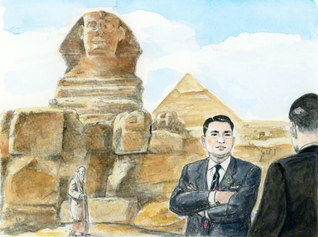 〈2月7日、エジプトで、クフ王の大ピラミッドを視察した伸一は、同行の青年に、ピラミッド建設について、自らの考えを語る〉
